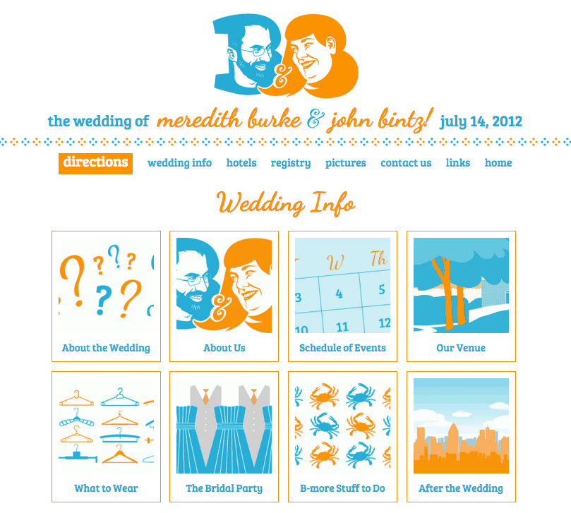 Home page of the custom WordPress themed site I created for our wedding at http://www.burkeandbintz.com/