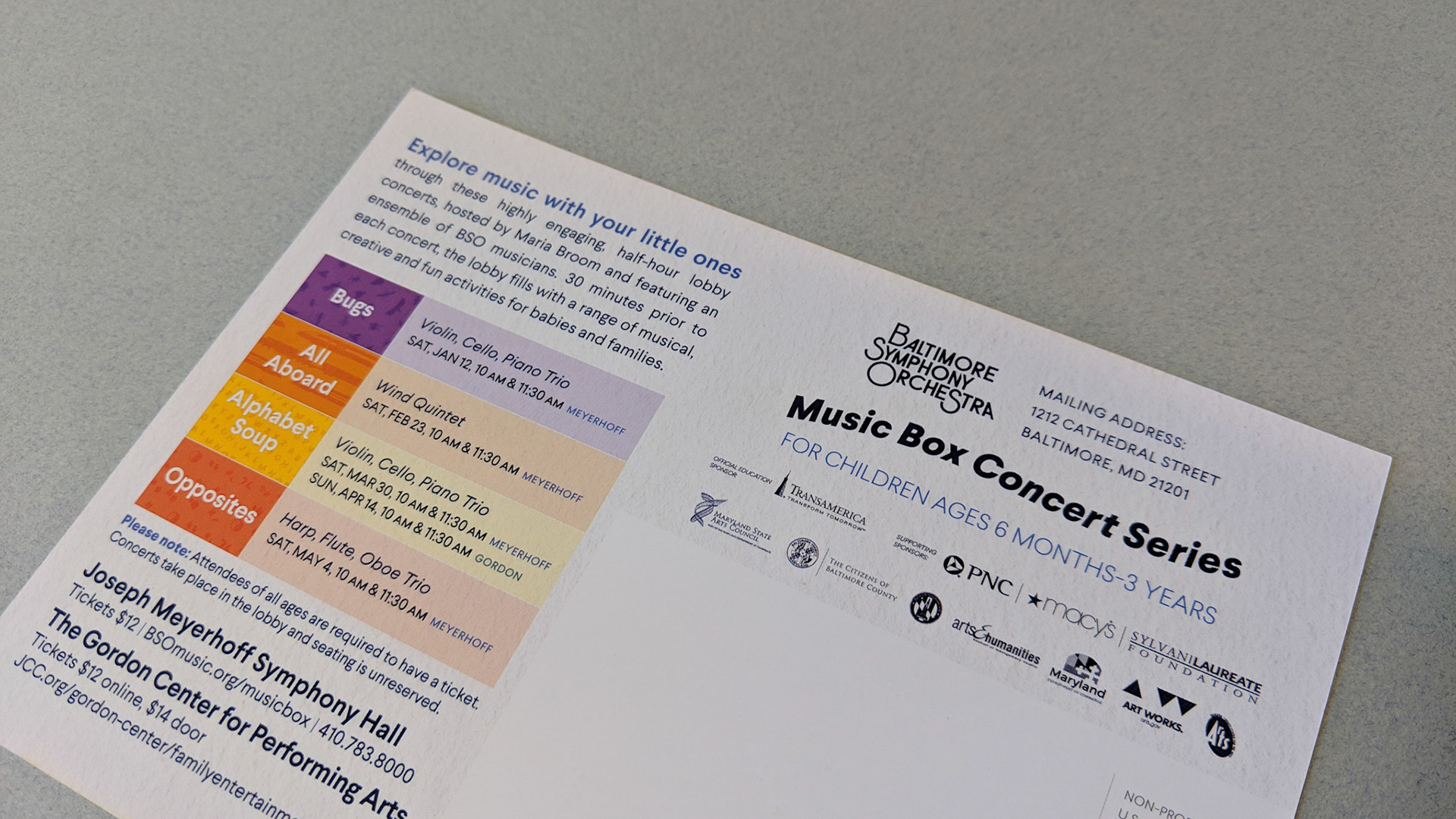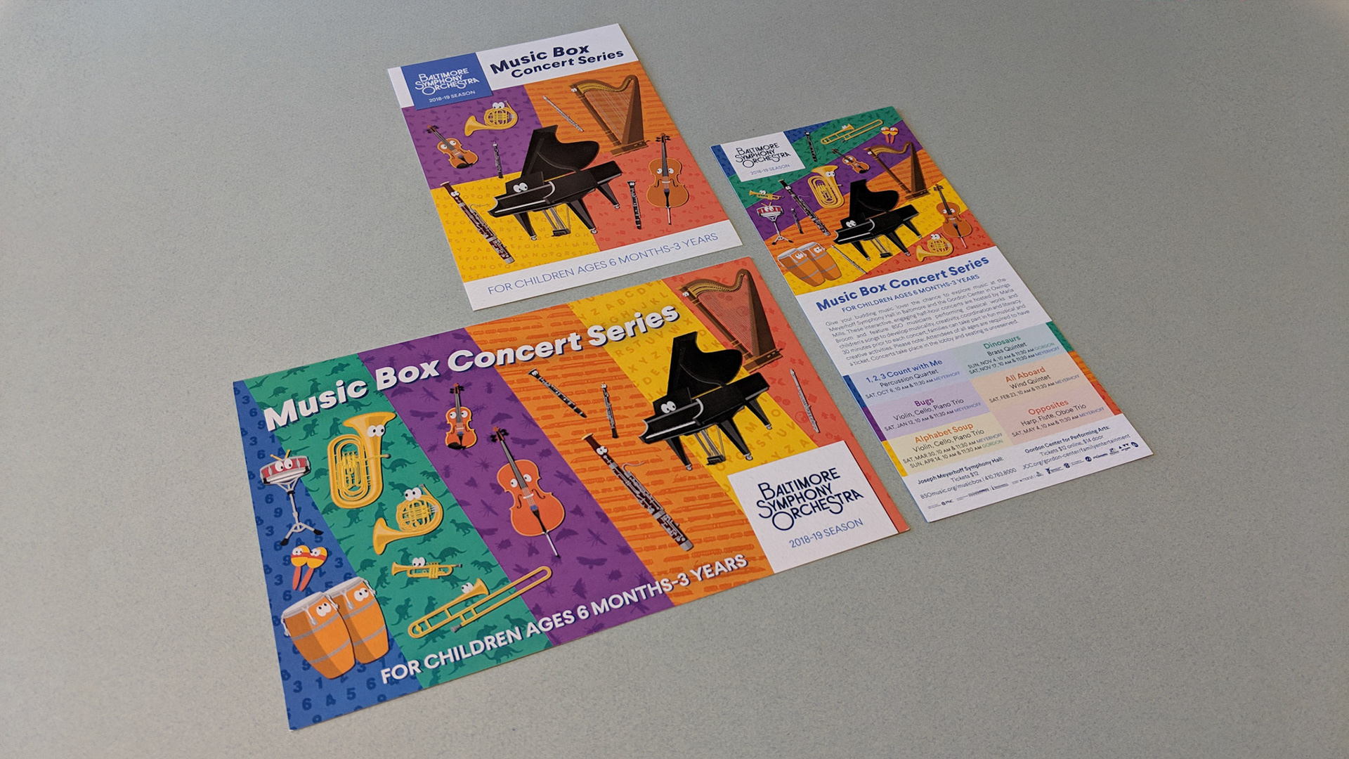 6x9 season announcement mailer, 5x7 mid-season promo mailer, 4x9 rack card
